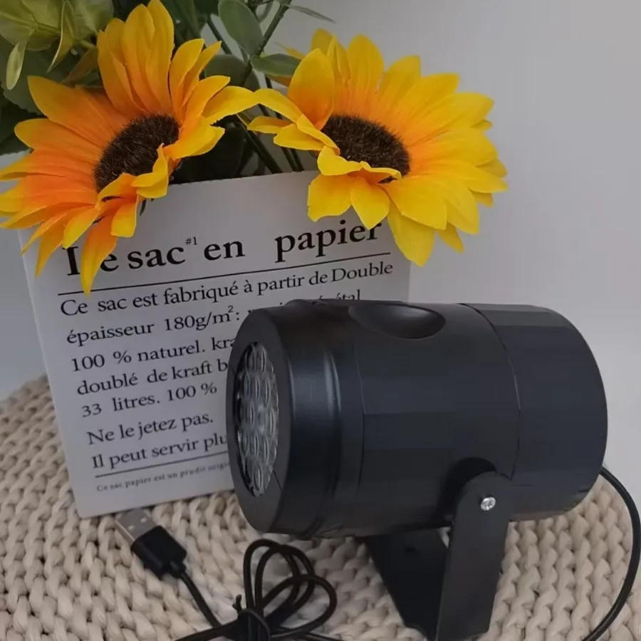 Proyector de luces navideñas USB con forma de copo de nieve, 16 patrones, luces LED para escenario, decoración navideña para fiestas y eventos en casa.